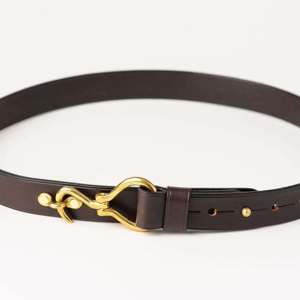 Simply the best Kentucky name plate belt available. Do not be fooled by cheaper imitations. All of our belts are made from ultra durable Bridle Leather. The same leather used by all of the local tack shops for anything from saddles to halters. Featured in dark brown with a classic hoof pick buckle which inserts into a metal clasp. Your belt will come stiff and break in perfectly over time . All of our belts come gently rolled and tied in a burlap sack.  Handmade here in Lexington, Kentucky.