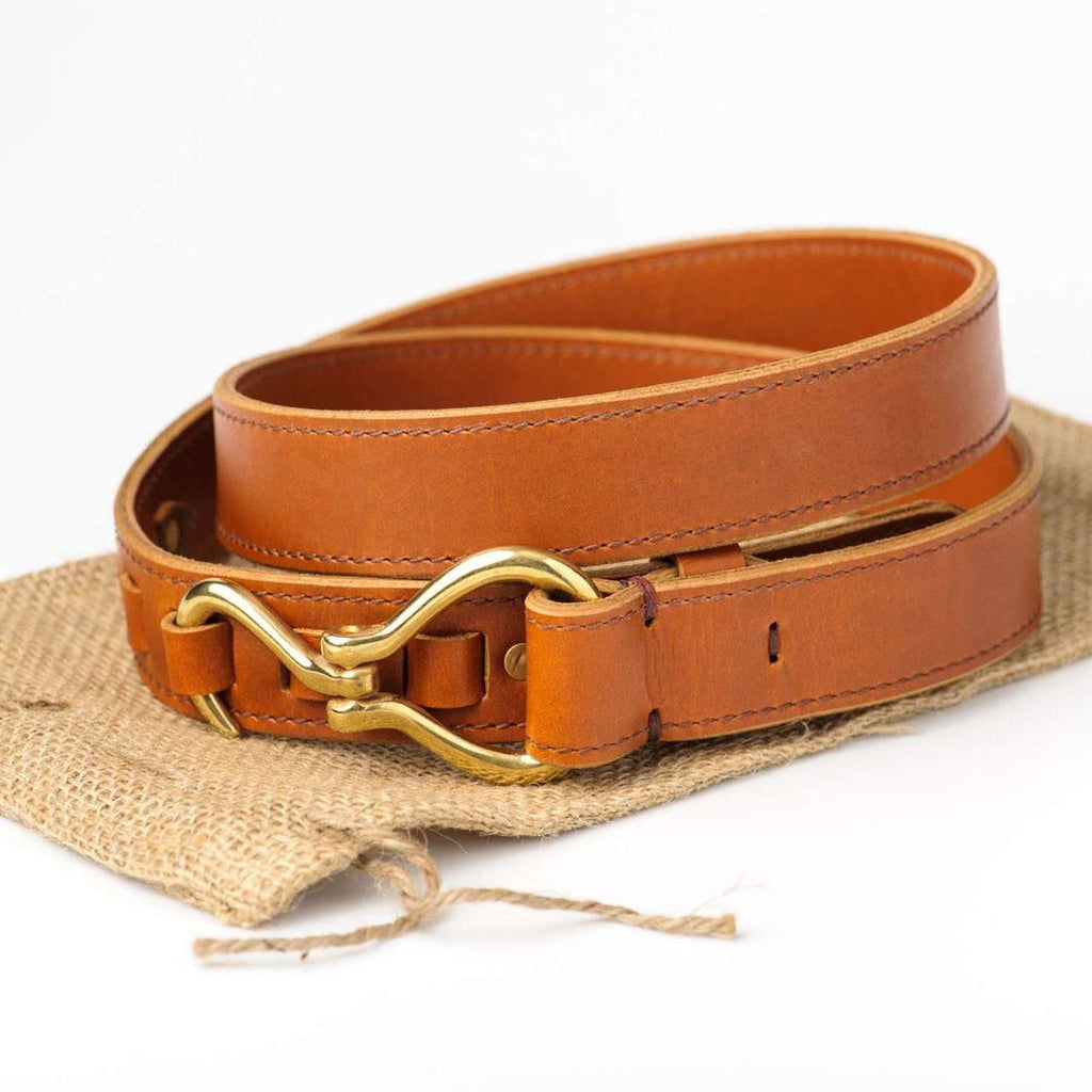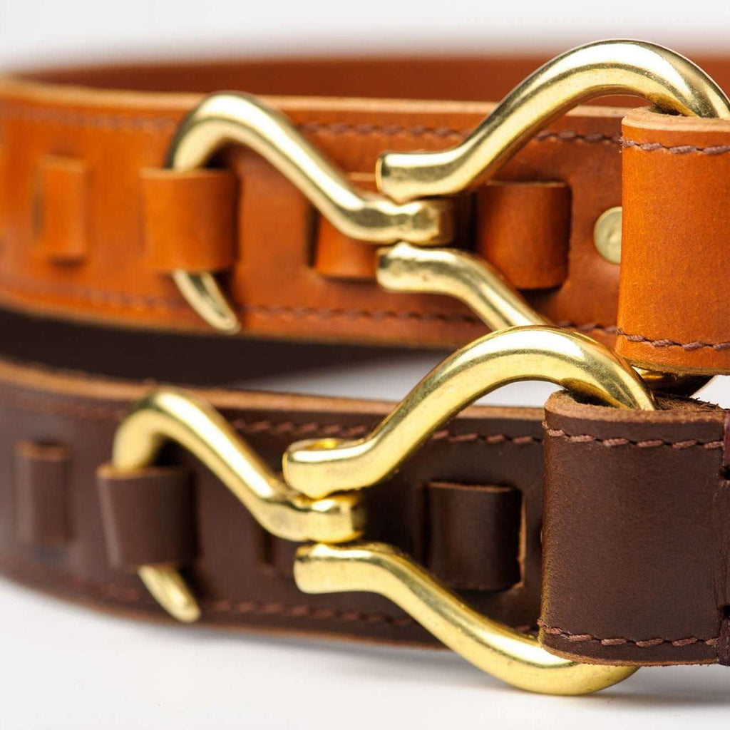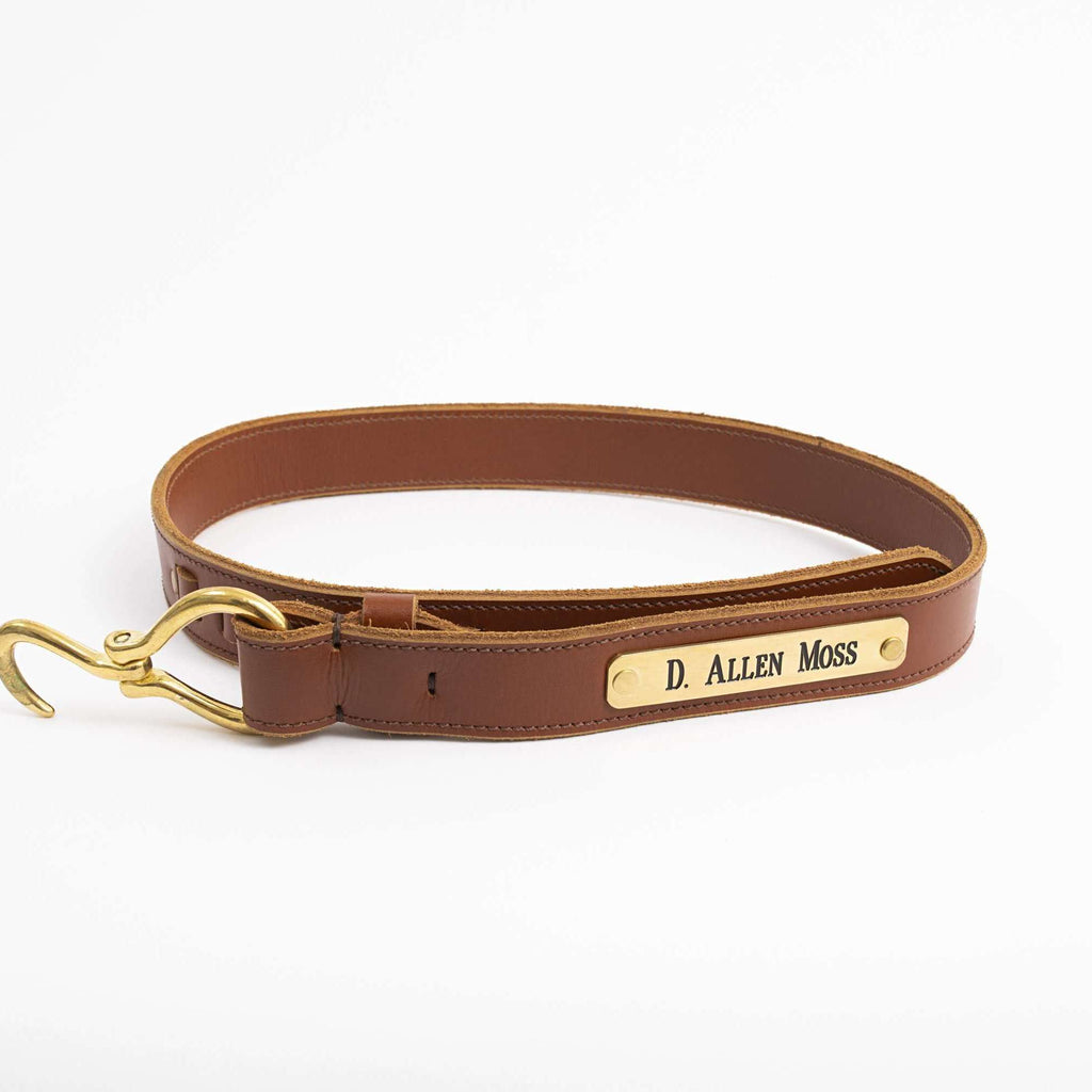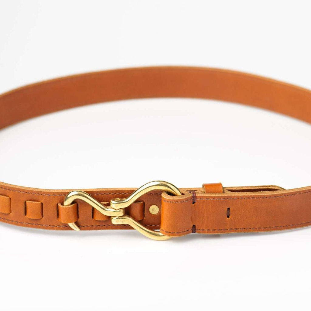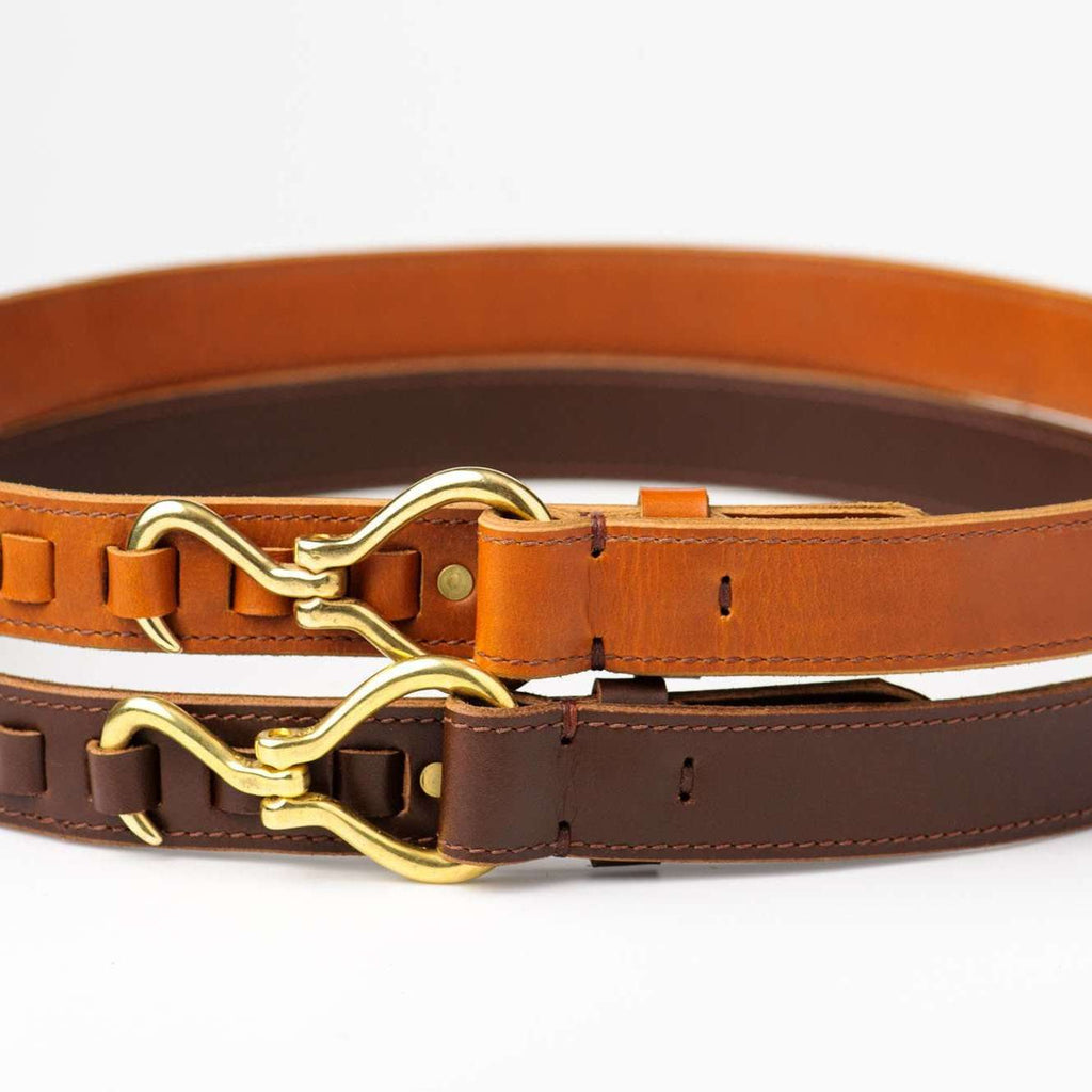 A classic style hoof pick belt that features a hoof pick woven into a buffalo leather strap. Adjust the belt by choosing a different hole while placing the belt tab behind the buckle through the back clasp. This is a Bluegrass Belts original.